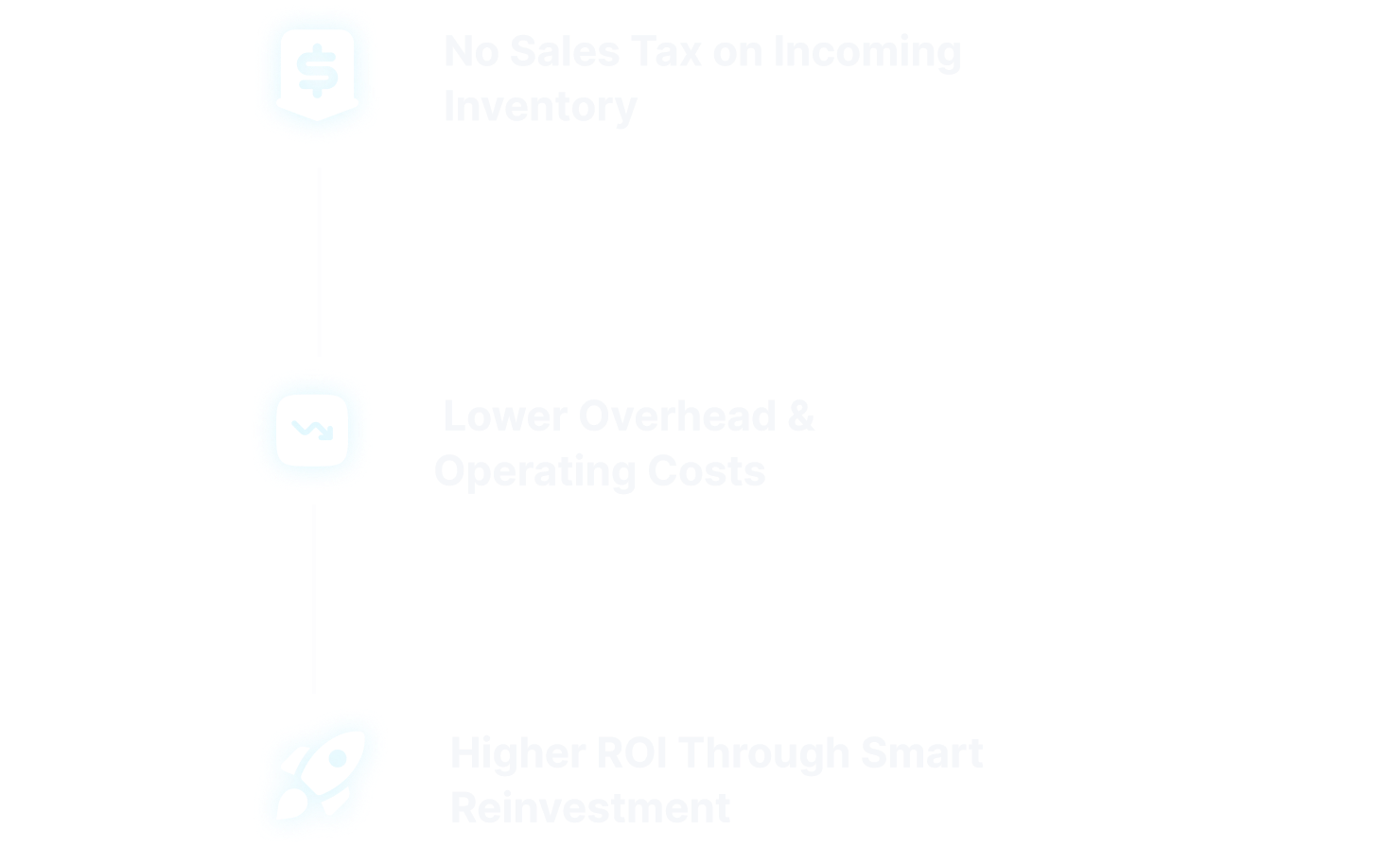 If you're sourcing through Online Arbitrage, every dollar matters. By leveraging our facility in a sales-tax-exempt state, OA sellers like you gain a meaningful edge—reducing cost-per-unit and boosting net profits without changing your sourcing strategy.